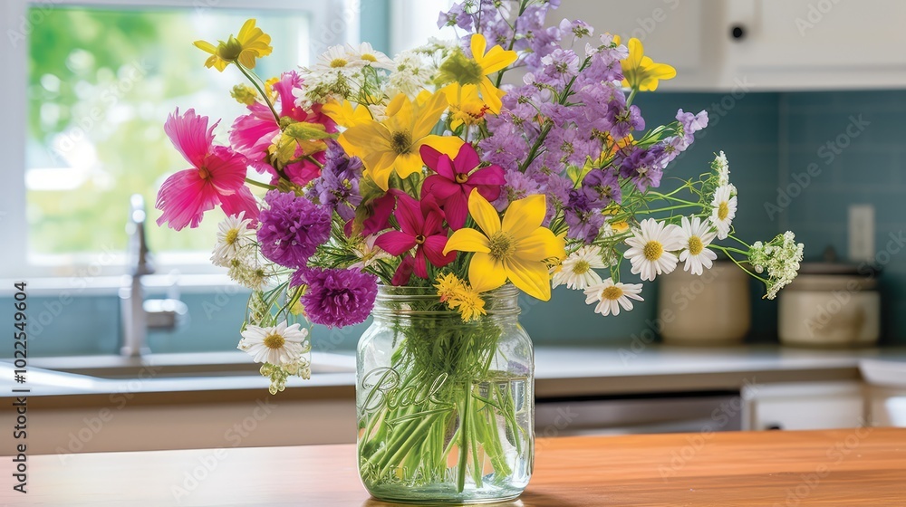 Farmhouse Flowers In Kitchen Wallpaper Mural - Decorly Solutions | Decorly Solutions