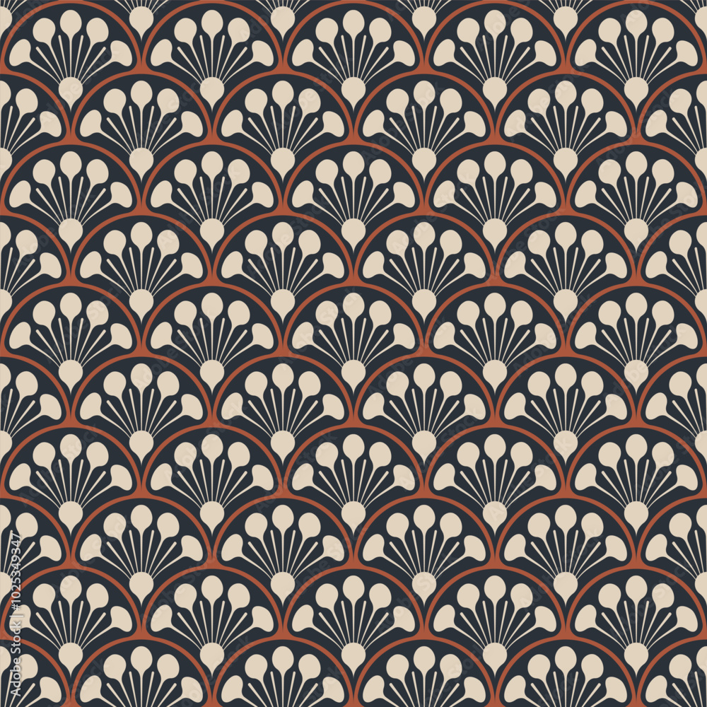 Ornate Art Nouveau Palm Frond Scale Seamless Vector Wallpaper Mural - Decorly Solutions | Decorly Solutions
