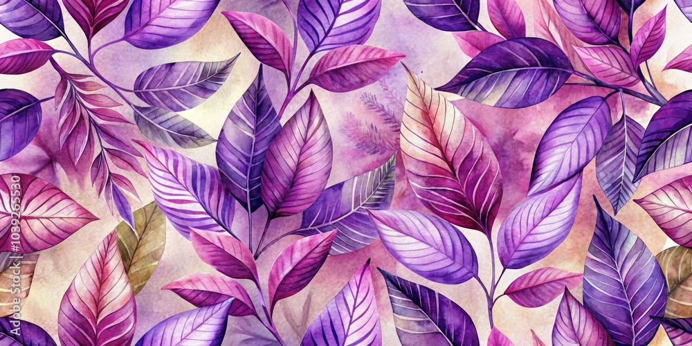 Elegant Purple Botanical Watercolor Leaves Pattern For Home Wallpaper Mural - Decorly Solutions | Decorly Solutions