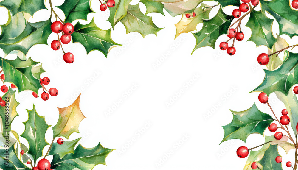 A Festive Border Featuring Holly Leaves And Red Wallpaper Mural - Decorly Solutions | Decorly Solutions