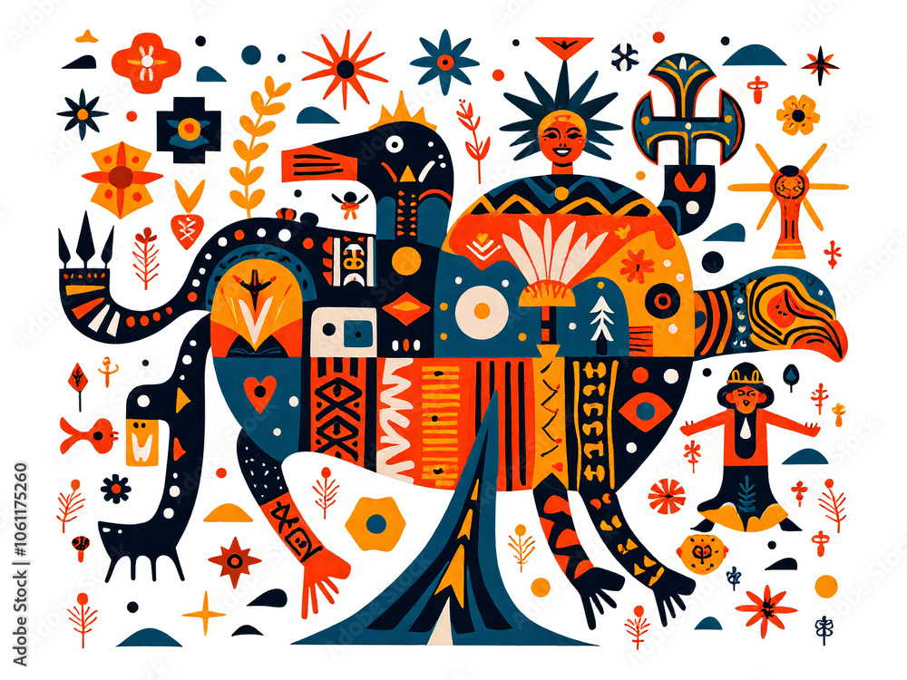African Native Art Character Design Pattern Seamless generative ai art