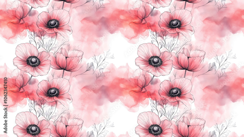 Elegant flower arrangement featuring anemones in ink outline Wallpaper