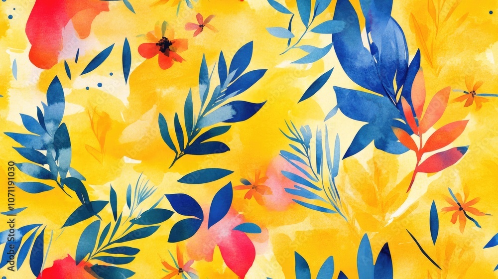 Seamless Pattern Of Vibrant Yellow Watercolor Designs With Wallpaper Mural - Decorly Solutions | Decorly Solutions