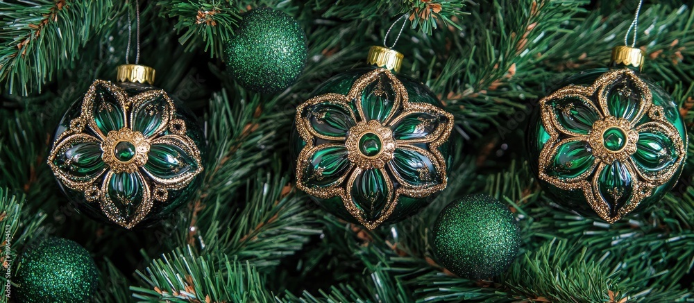 Elegant Green And Gold Ornaments On A Lush Wallpaper Mural - Decorly Solutions | Decorly Solutions