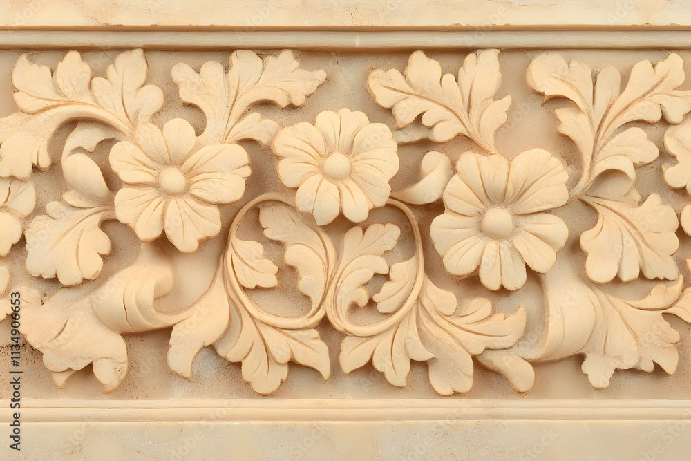 Floral Carving Illustration Beige Background Wallpaper Mural - Decorly Solutions | Decorly Solutions
