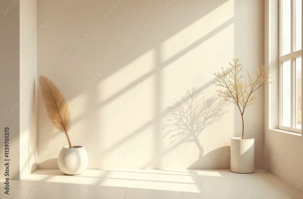 Minimalistic Light Beige Background With Window Shadows And Wallpaper Mural - Decorly Solutions | Decorly Solutions