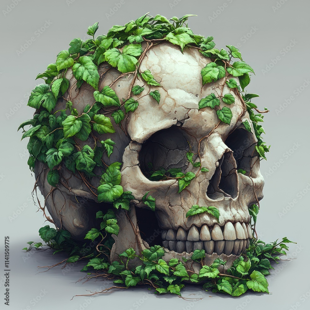 A Skull Entwined With Green Vines Symbolizing The Wallpaper Mural - Decorly Solutions | Decorly Solutions