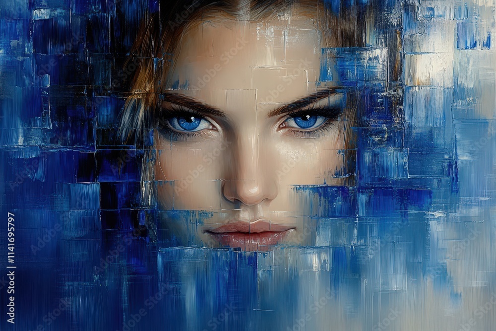 A Serene Young Caucasian Woman With Striking Blue Wallpaper Mural - Decorly Solutions | Decorly Solutions