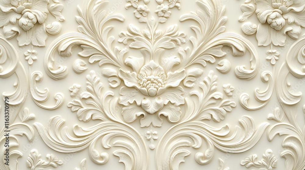 A Seamless Cream-colored Pattern With Ornate Scroll-like Motifs Wallpaper Mural - Decorly Solutions | Decorly Solutions