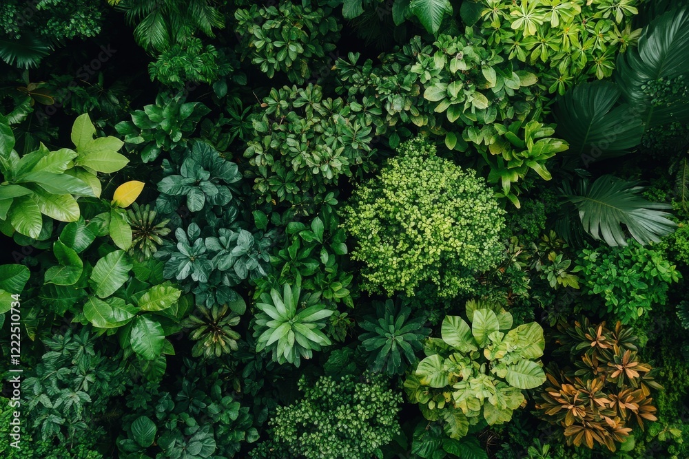 Lush Greenery Wall of Various Leaves and Plants in Natural Setting