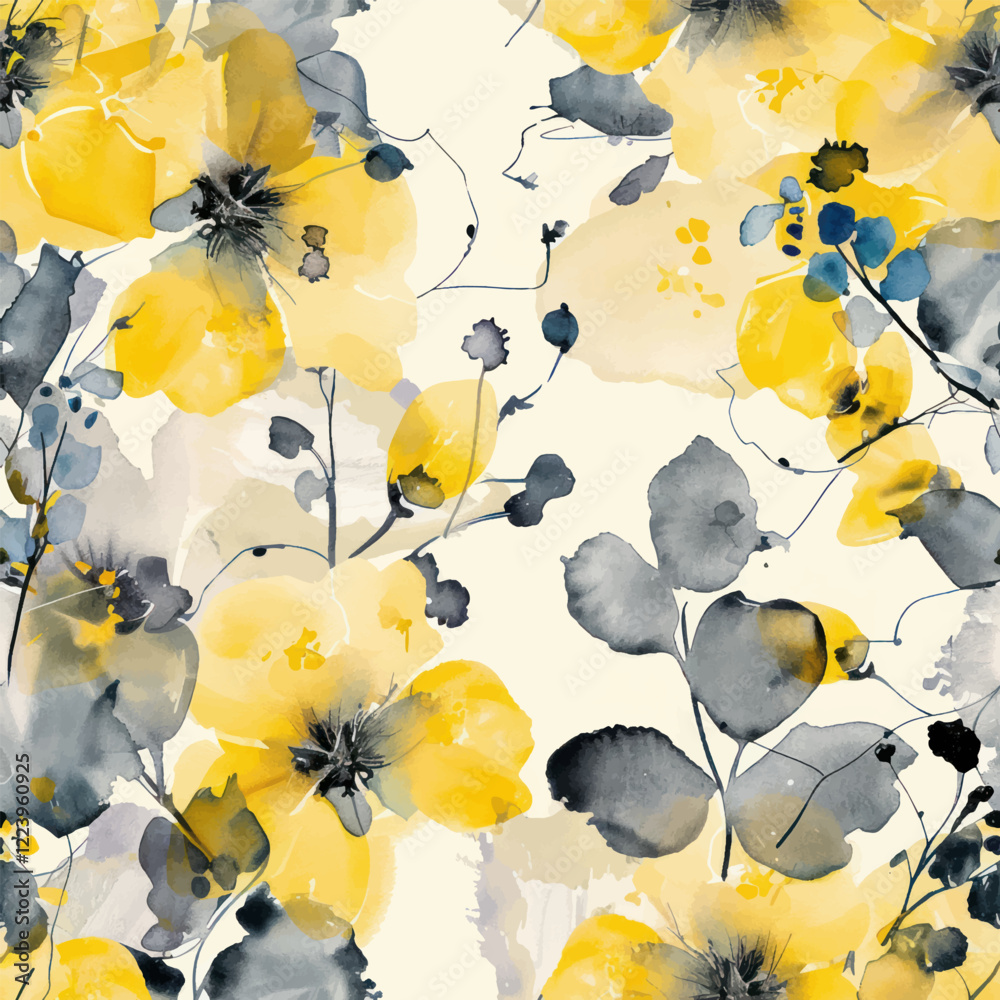 Cute Yellow And Gray Floral Pattern On A Wallpaper Mural - Decorly Solutions | Decorly Solutions