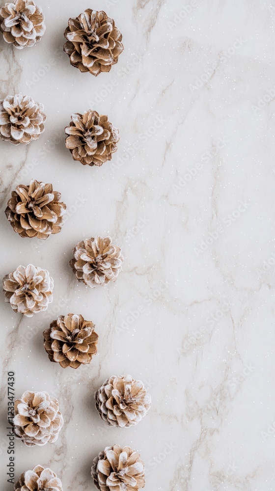 Decorative Pinecones With Frosted Tips Arranged On A Wallpaper Mural - Decorly Solutions | Decorly Solutions
