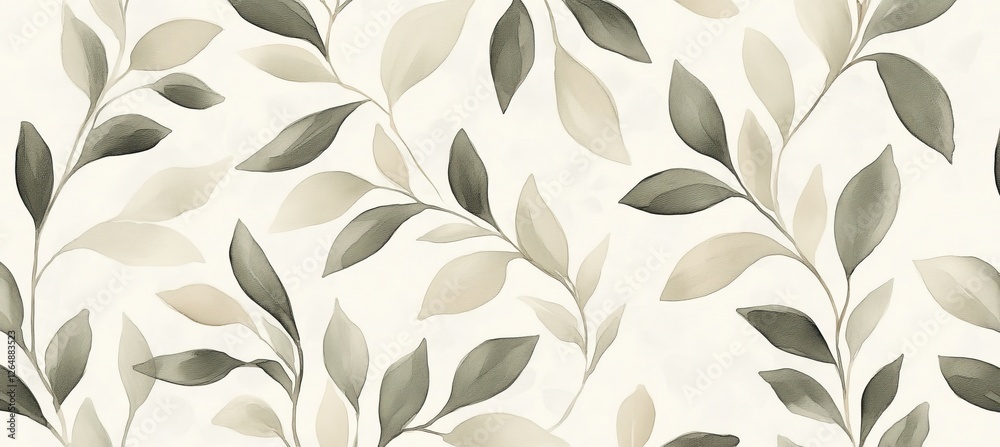 Seamless Pattern Watercolor Leaves Light Green And Cream Wallpaper Mural - Decorly Solutions | Decorly Solutions
