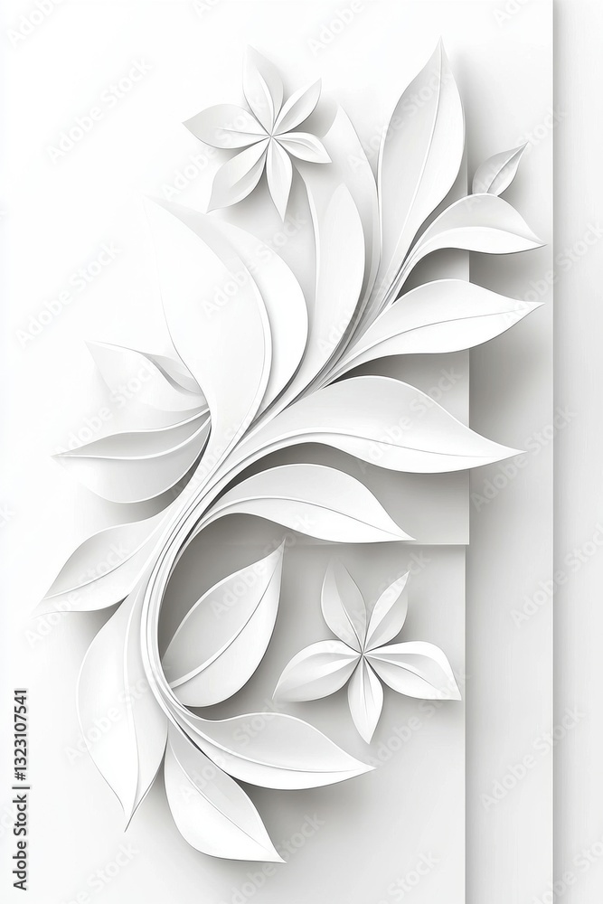 Elegant White Paper Flower And Leaf Design Wallpaper Mural - Decorly Solutions | Decorly Solutions