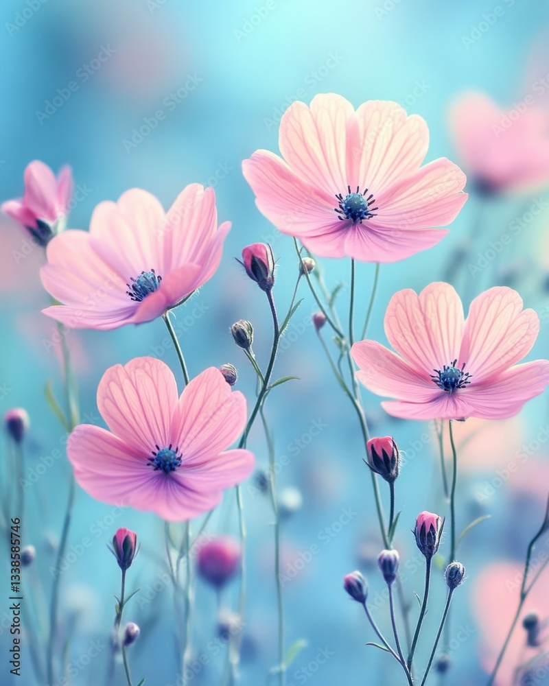 Serene pastel cosmos flowers in dreamy soft focus against a Wallpaper