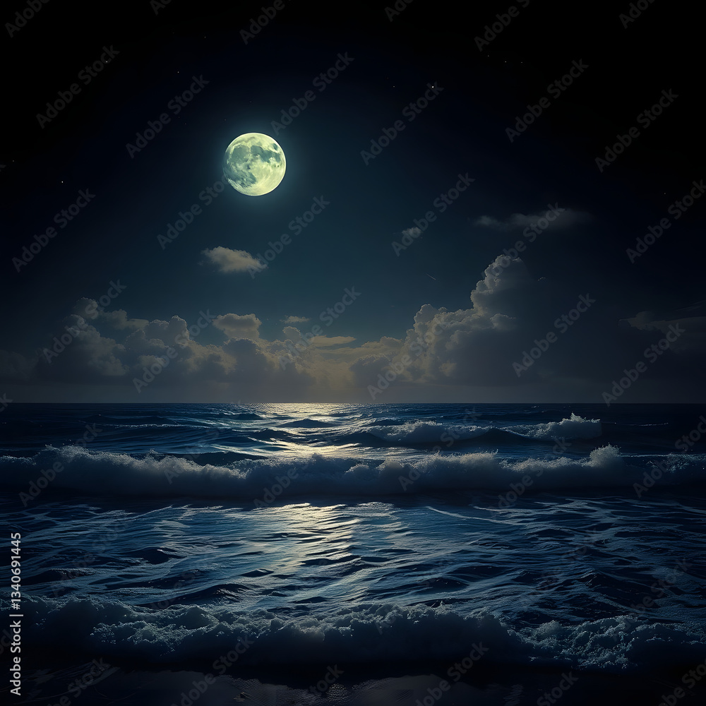 The Moonlit Sea Clouds Moon And Stars Have Wallpaper Mural - Decorly Solutions | Decorly Solutions