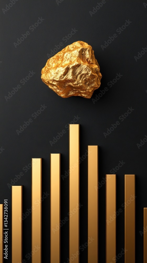 A gold nugget floating above a bar chart symbolizing gold pr Wallpaper