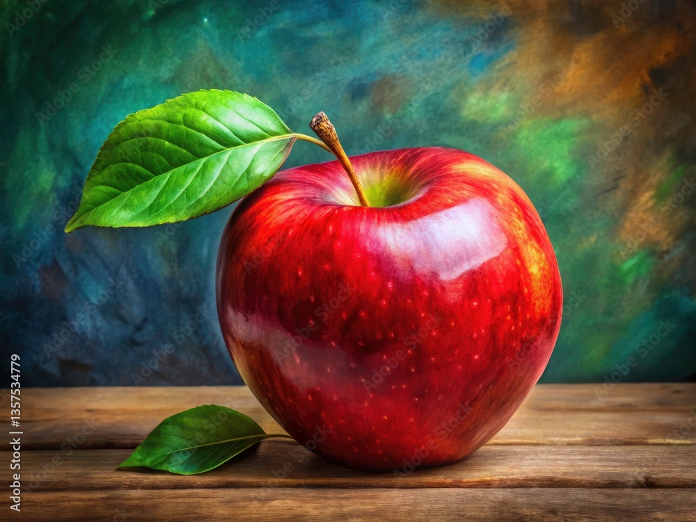 A Captivating Still Life Painting Featuring A Red Apple With A Vibrant Green Leaf Against A Dark Background. Utilize Rich, Contrasting Colors To Draw Attention To The Focal Point Of The Composition, W