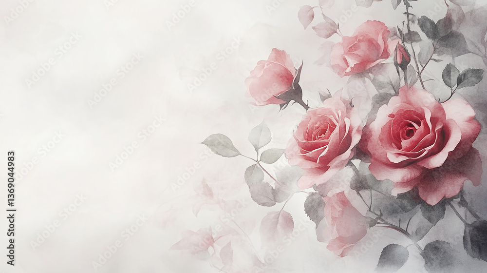 Soft Blush Roses with Delicate Petals on Abstract Background