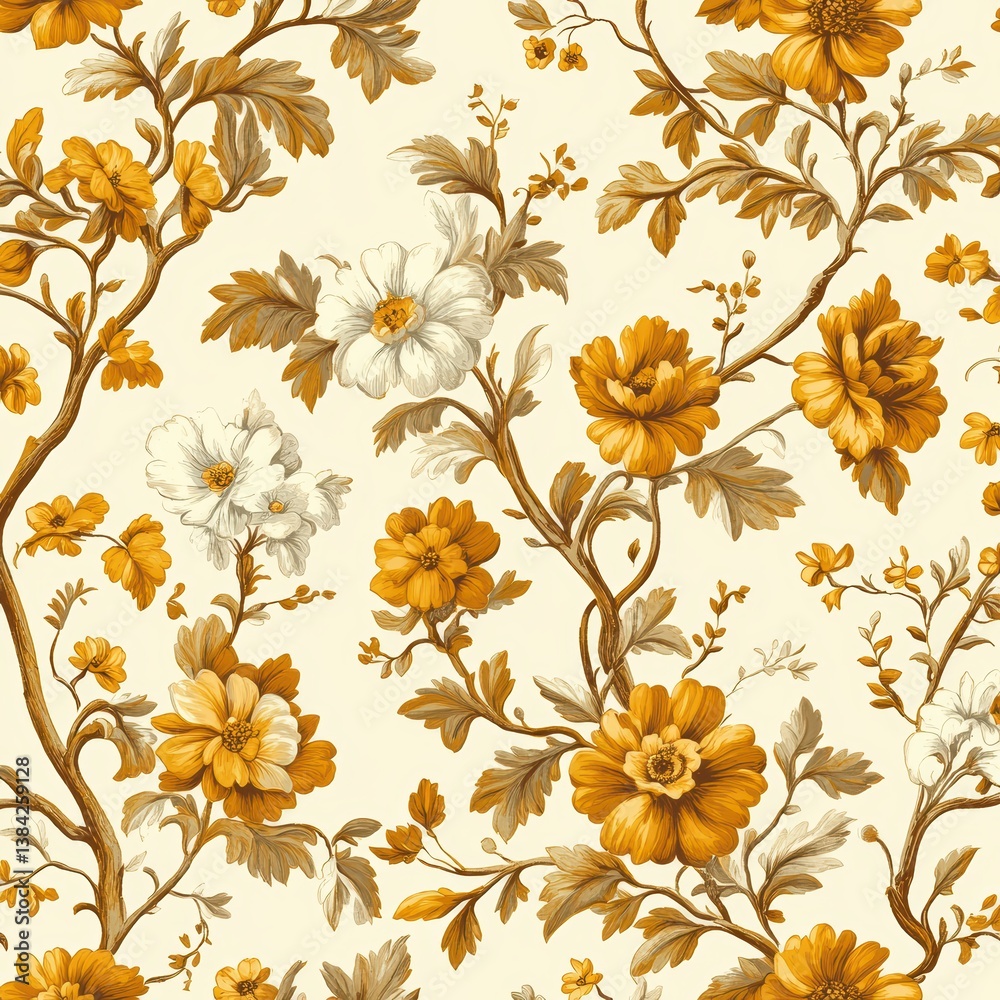 Elegant Floral Pattern In Golden Tones On Soft Wallpaper Mural - Decorly Solutions | Decorly Solutions