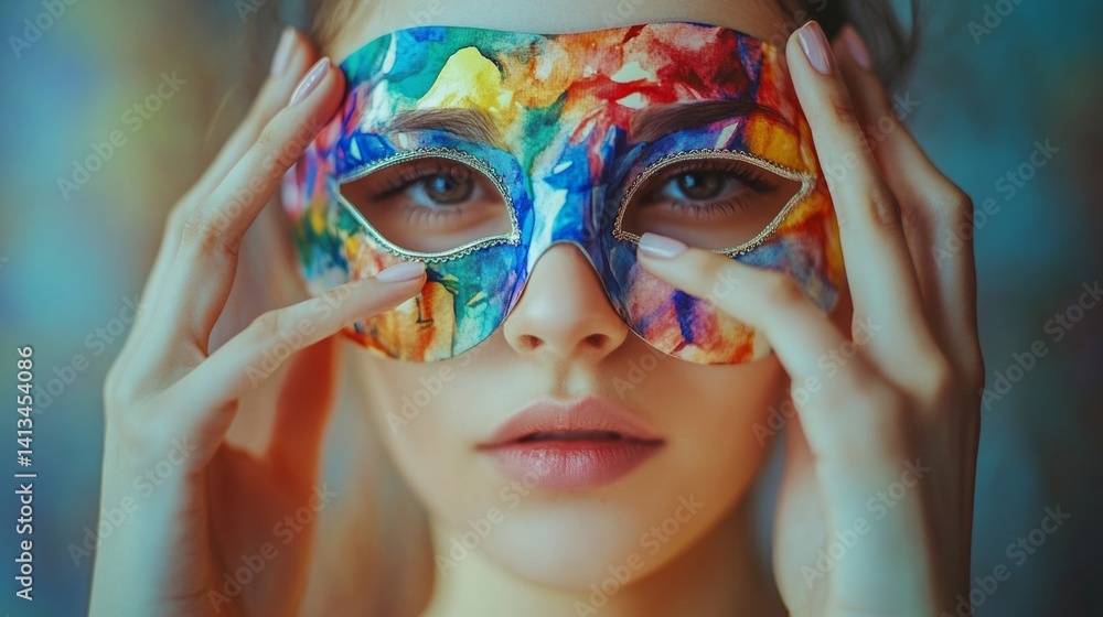 Colorful Masked Female Adult With Abstract Paint Design Wallpaper Mural - Decorly Solutions | Decorly Solutions