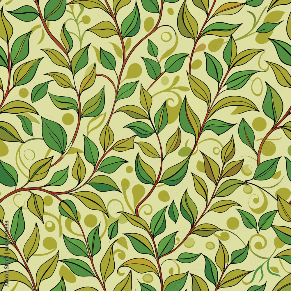 Seamless Floral Pattern Vector With Leaf And Flower Wallpaper Mural - Decorly Solutions | Decorly Solutions