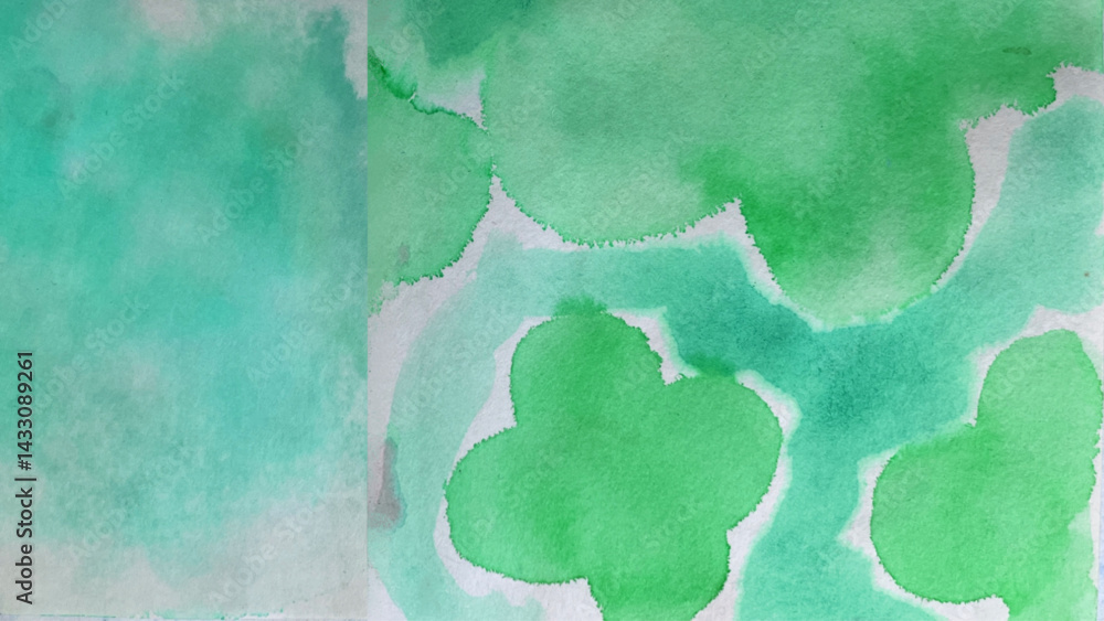 緑色の水彩で描いた背景イラスト、ペパーミントカラーの水彩で描いた花の絵、アクアグリーンの背景絵画 Wallpaper Mural - Decorly Solutions | Decorly Solutions