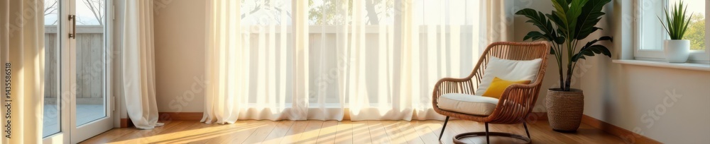Modern Living Room With Comfy Rattan Armchair And Wallpaper Mural - Decorly Solutions | Decorly Solutions
