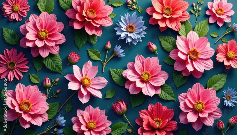 Bold Dahlia Blossoms, Geometric Arrangement, Rich Hues , Bold, Art, Arrangement