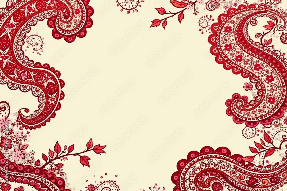 Bold red paisley on cream background large scale print print Wallpaper