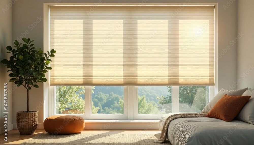 Modern cellular shades elegantly filtering sunlight in a bri Wallpaper