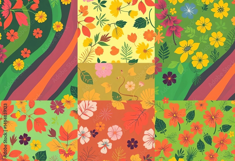 Seamless nature patterns in vibrant colors ready-to-use Illu Wallpaper