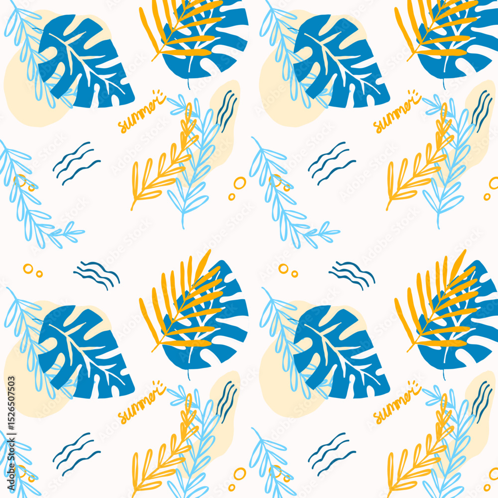 White Blue Summer Leaf Ocean Pattern Illustration Vector Wallpaper Mural - Decorly Solutions | Decorly Solutions