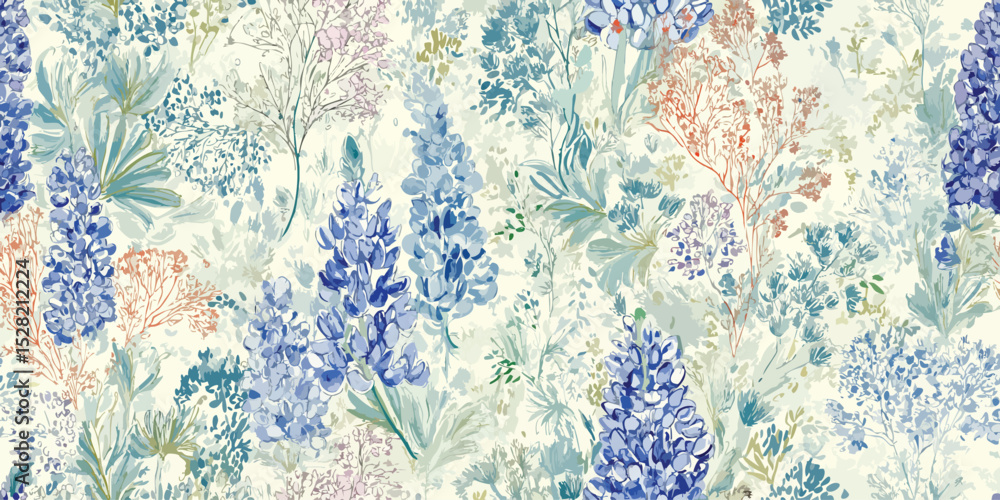 Elegant Watercolor Lupine Floral Seamless Pattern Delicate Botanical Wallpaper Mural - Decorly Solutions | Decorly Solutions