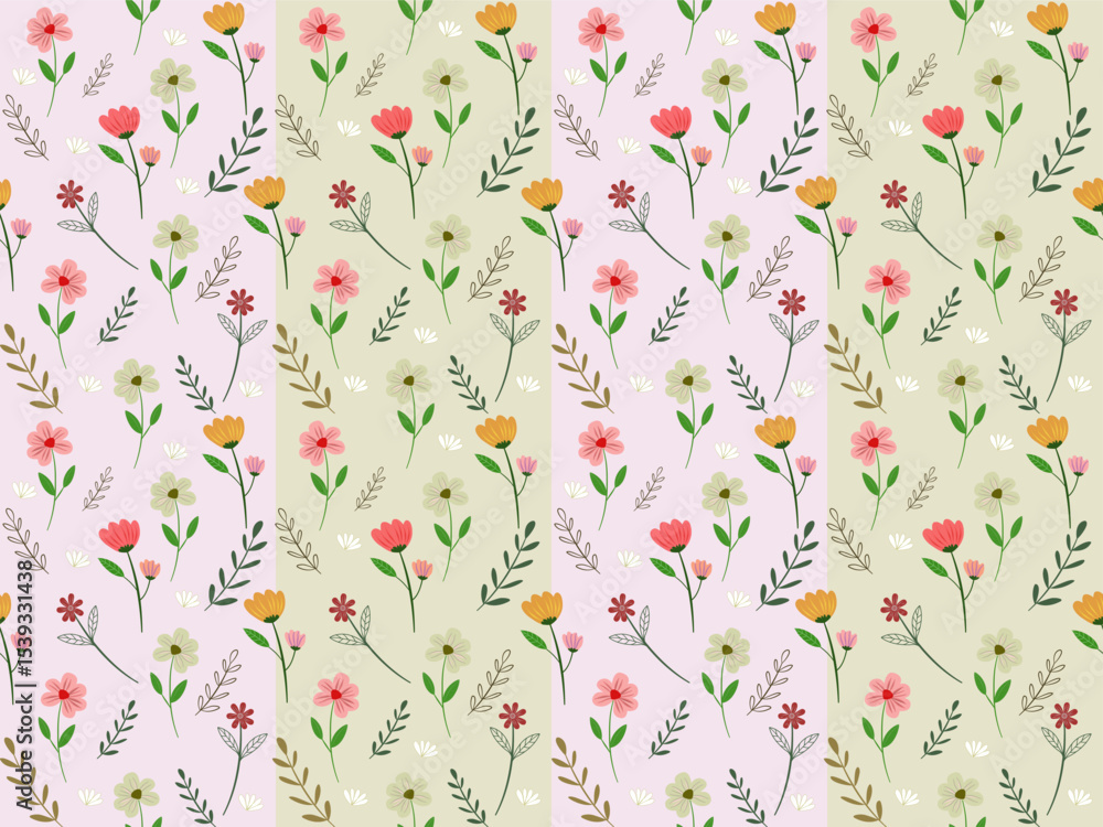 Seamless Floral Pattern With Pink Flowers And Leaves Wallpaper Mural - Decorly Solutions | Decorly Solutions