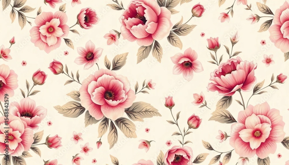 Elegant Floral Motifs In A Soft Color Palette, Creating A Sophisticated Repeating Interior Design Pattern , Wallpaper, Print, Surface