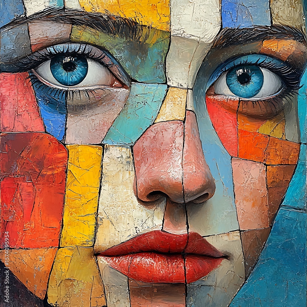 Artistic Fragmented Portrait Of A Woman Featuring Bright Wallpaper Mural - Decorly Solutions | Decorly Solutions