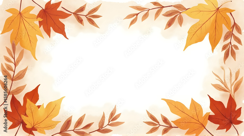 Autumn Leaves Border Frame With Orange Yellow Brown Wallpaper Mural - Decorly Solutions | Decorly Solutions