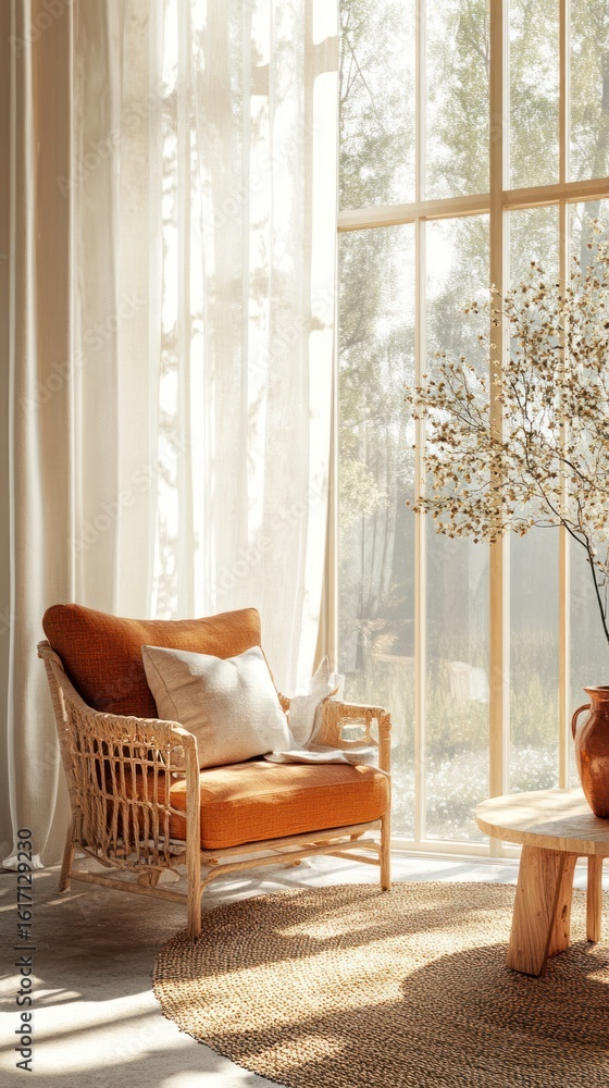 Sunlight Streams Into A Room Featuring A Wicker Wallpaper Mural - Decorly Solutions | Decorly Solutions