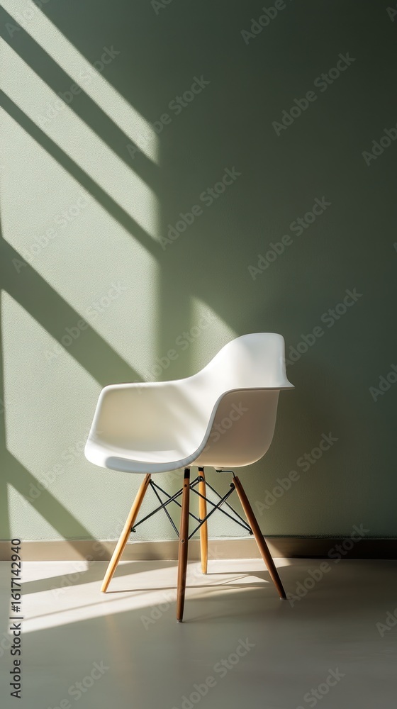 Retro Plastic Chair In A Minimalist Setting, Soft Natural Light