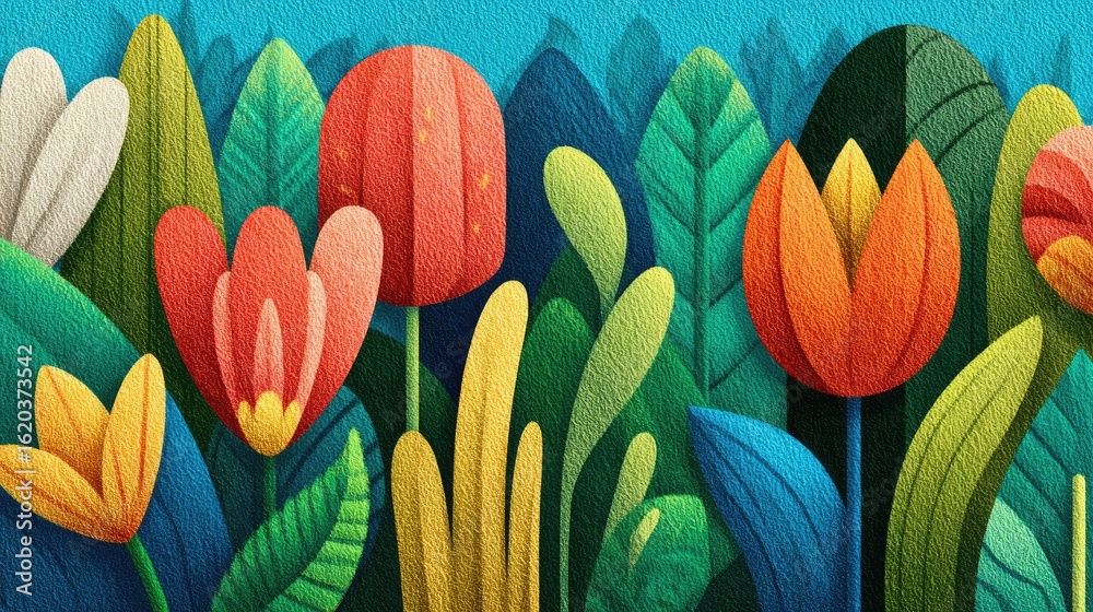 Vibrant floral arrangement nature scene digital illustration colorful plants close-up view modern art concept for nature enthusiasts