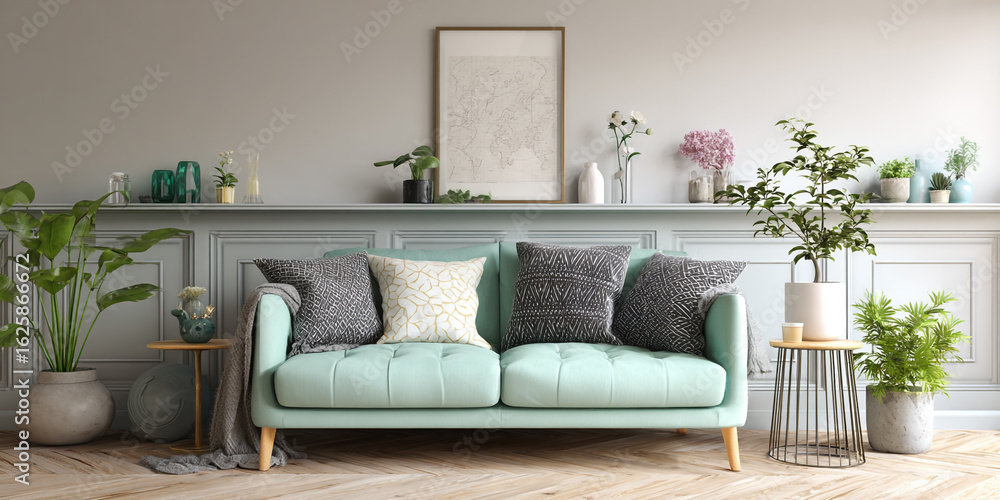 A Luxurious Red Leather Sofa In A Dark Wallpaper Mural - Decorly Solutions | Decorly Solutions
