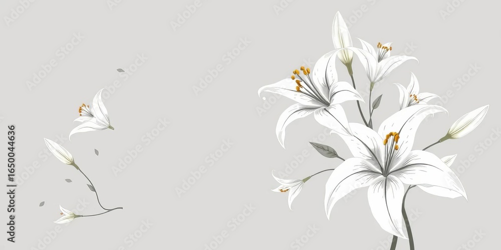 Elegant hand-drawn white lily floral pattern on gray plant s Wallpaper