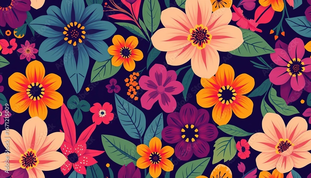 Vibrant Flat-style Exotic Floral Seamless Pattern For Fabric Wallpaper Mural - Decorly Solutions | Decorly Solutions