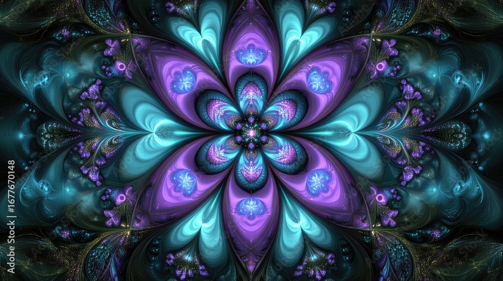 Teal And Purple Fractal Flower Intricate Digital Art Wallpaper Mural - Decorly Solutions | Decorly Solutions