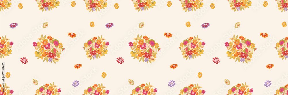 Seamless vintage floral bouquet pattern on soft cream backgr Wallpaper