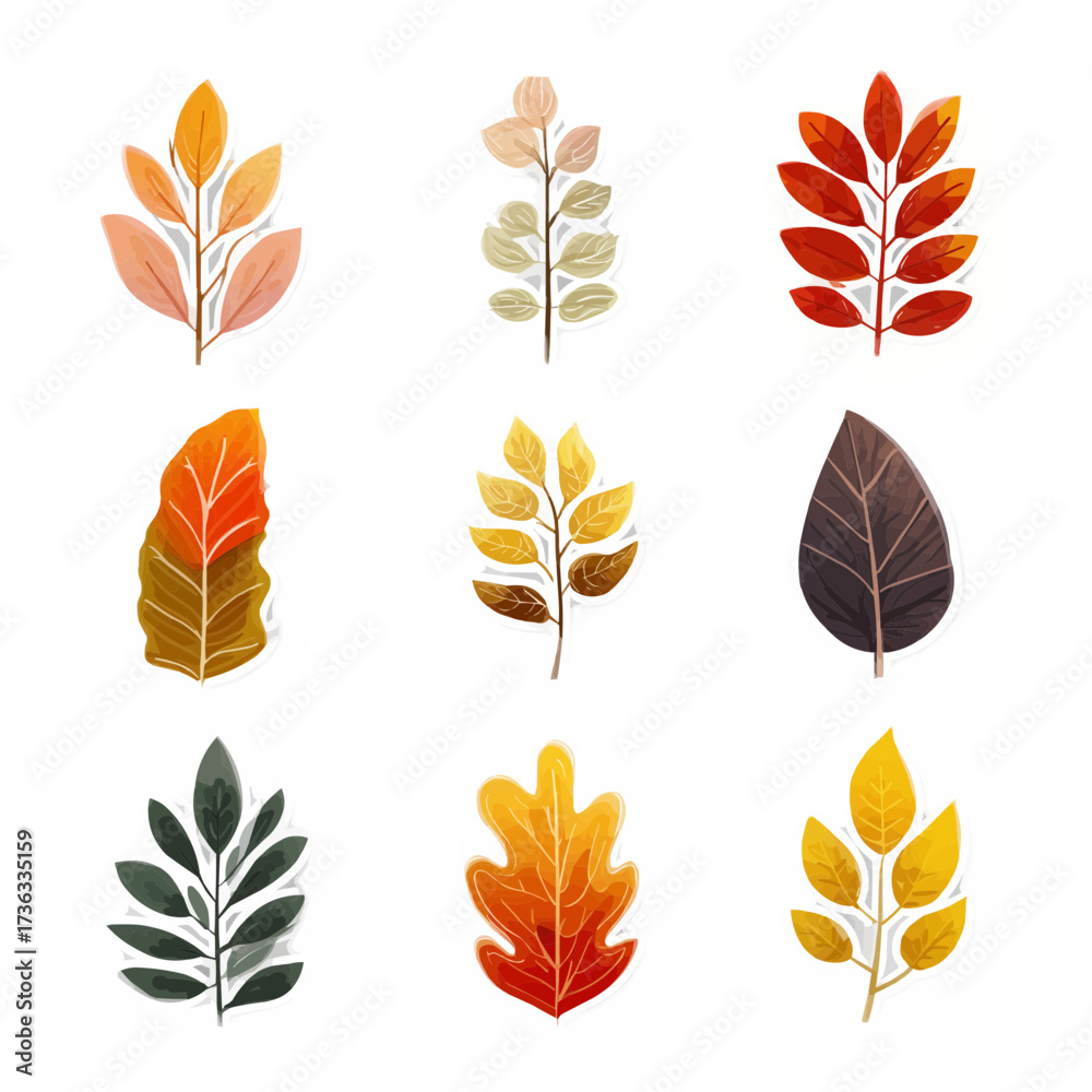 Pack Of Fall Foliage Stickers In Flat Vector Wallpaper Mural - Decorly Solutions | Decorly Solutions