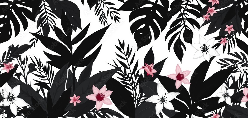 Elegant Black And White Silhouette Tropical Leaves And Wallpaper Mural - Decorly Solutions | Decorly Solutions
