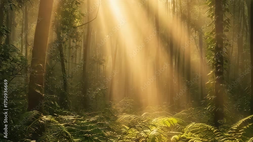 Golden Sunbeams Pierce Dense Forest Canopy Illuminating Lush Wallpaper Mural - Decorly Solutions | Decorly Solutions