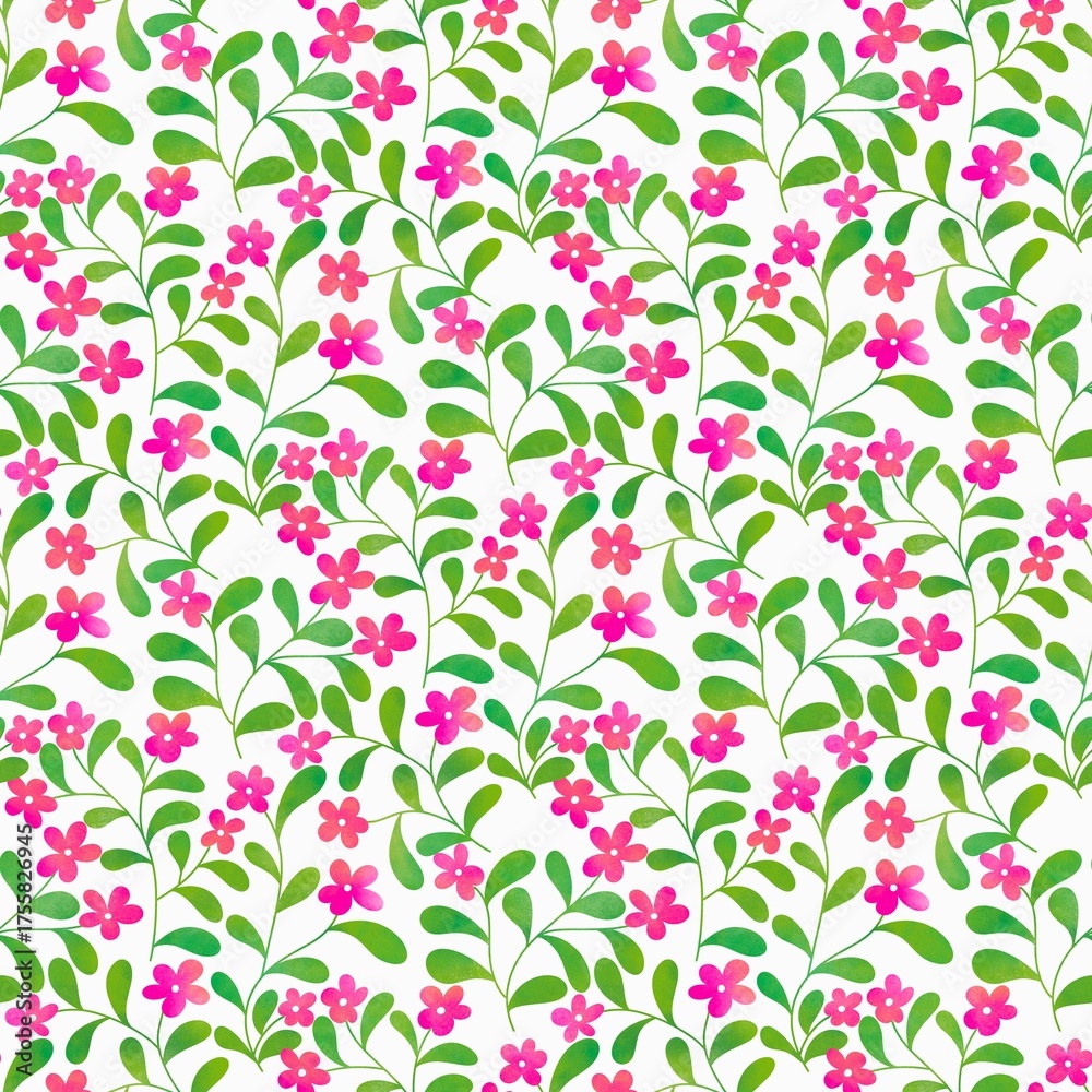 Vibrant Garden Pattern With Pink Flowers And Green Wallpaper Mural - Decorly Solutions | Decorly Solutions